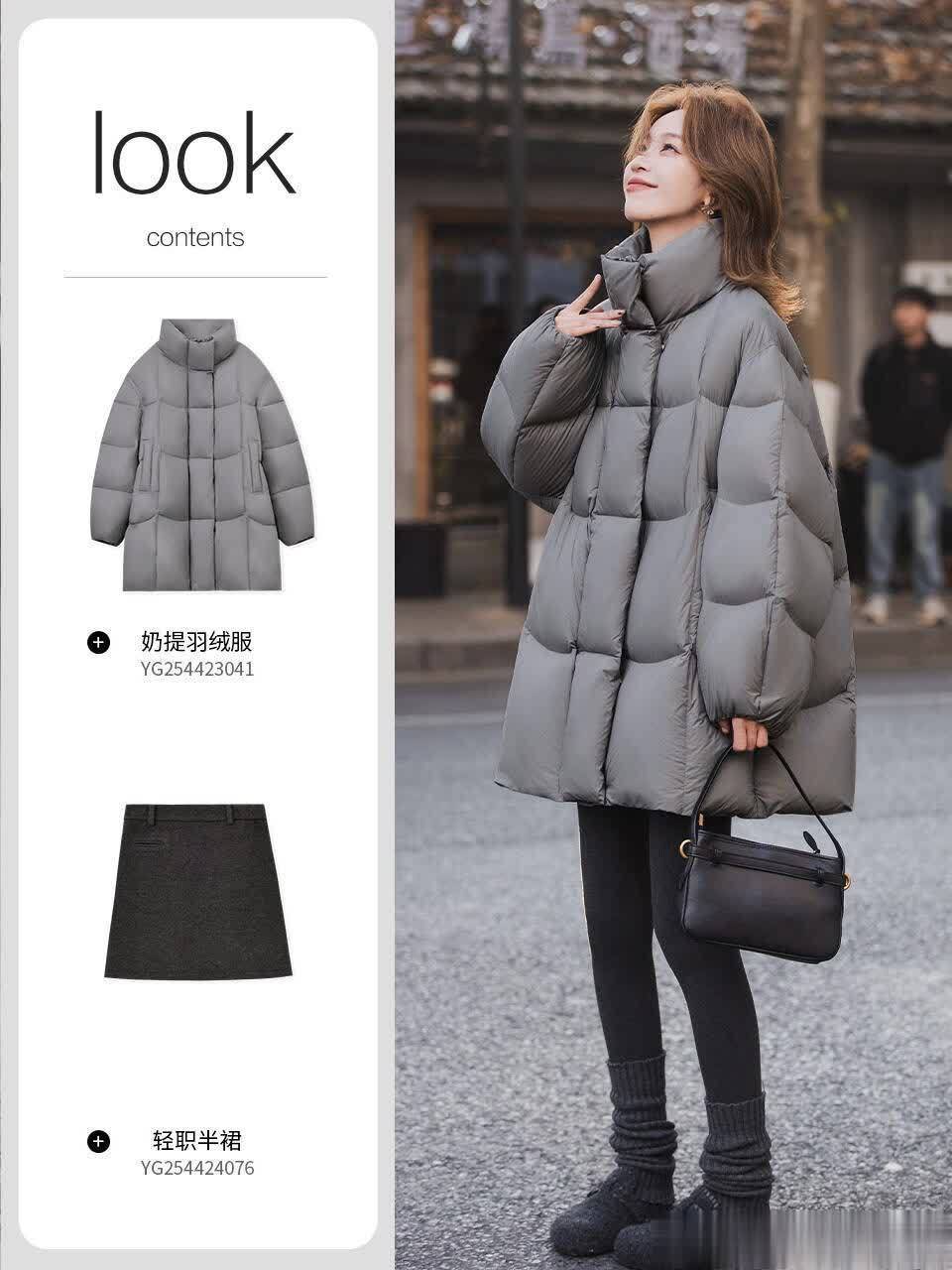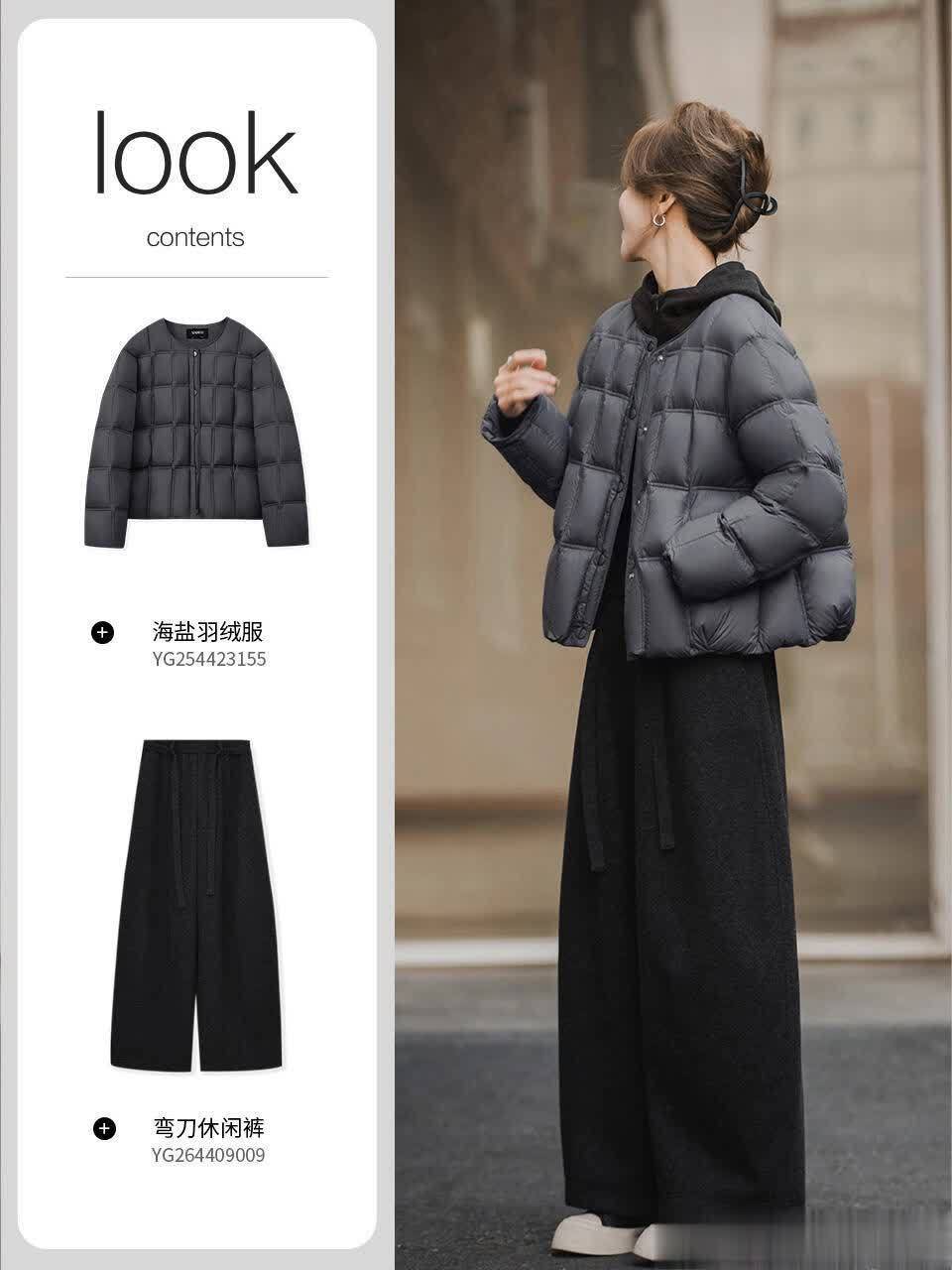 上宽下窄:用一件宽松的短款羽绒服或毛呢外套,搭配修身的直筒裤或半身裙,可很好地优化身材比例,显得利落有精神。